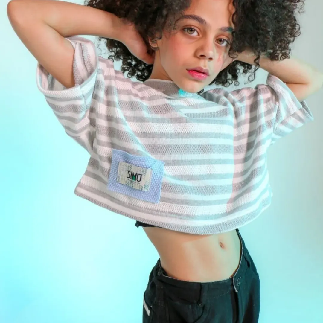 / راه راه سفید طوسی